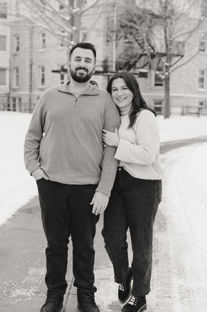 Kailey and Brandon's engagement session was pure joy from start to finish. We met at Carroll University, where the beautiful winter backdrop set the scene- snow already covering the ground, adding a quiet charm to every frame. As if perfectly timed, fresh snow began to fall near the end of their shoot, turning their session into something magical. Instead of shying away from the cold, they embraced it fully, laughing their way through a playful snowball fight. Their energy, constant smiles, and easy laughter made this session so memorable. It was an afternoon that felt as effortless and genuine as their love.
